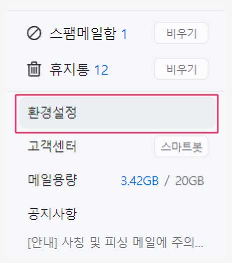 먼저 네이버 메일에 접속하여 환경설정 메뉴를 클릭합니다.