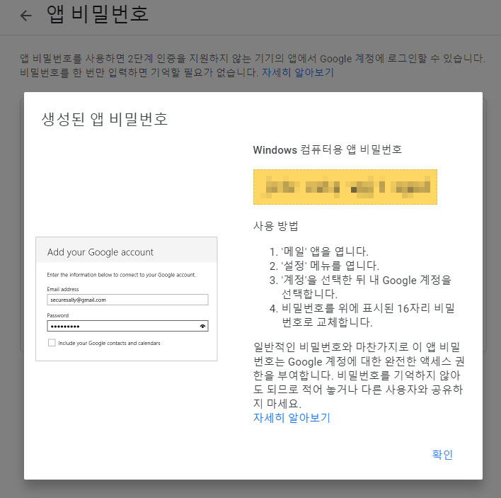 구글 G메일과 앱비밀번호를 입력하라고 되어있습니다.