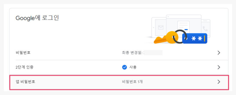 앱 비밀번호는 크롬의 보안 탭에서 확인 가능합니다.
