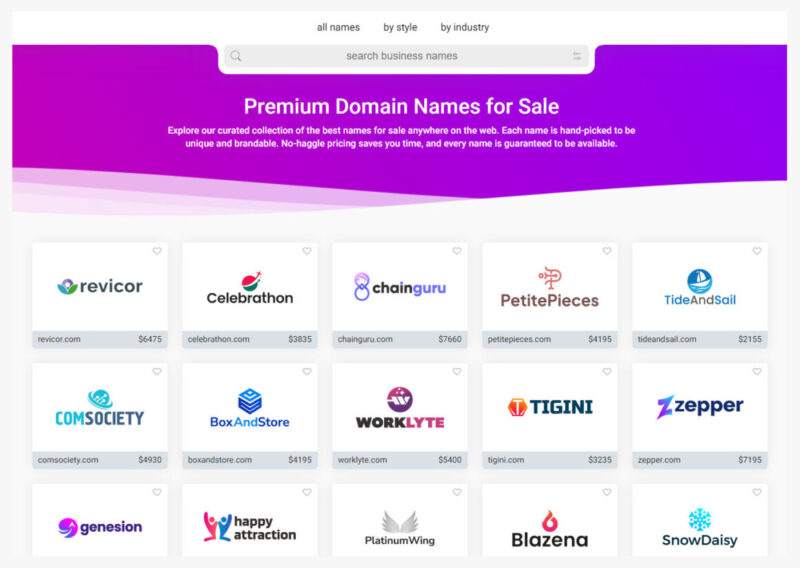브랜드버킷에서는 기본적으로 .com 도메인을 구입할 수 있으며, 구입 시 로고는 ai 또는 jpg 파일로 받아볼 수 있습니다. 저도 이 사이트에서 2,000불가량 하는 로고와 도메인을 2개 구입한 이력이 있습니다.